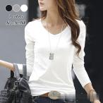 Tシャツ レディース Vネックカットソー 長袖 無地 ゆったり シルエット おしゃれ 春 秋 トップス 白 Tシャツ