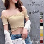 サマーニット レディース オフショルダー 肩だし トップス オフショル フリル 春夏【のみ】