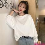 !!ロングTシャツ 少女 レディース パフスリーブ ゆったり 薄手 オシャレ ランドネック 春秋 無地 カットソー トップス