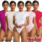 半袖カットソー ボディスーツ レオタード レディース 女性 トップス クルーネック タイト カラバリ豊富 無地 単色 お洒落 かわいい 普段使い 婦人