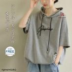 tシャツ パーカー レディース 半袖 綿混 トレーナー フード付き 大きいサイズ トップス コットン カットソー プルオーバー 夏 カジュアル シンプル 大人可愛い
