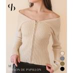 フロントジップ ニット プルオーバー 襟付き 太リブ レディース 長袖 トップス 2way オフショルダー 肩出し デコルテ見せ 伸びるエロ可愛 きれ