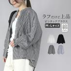 ブラウス レディース 長袖 白 黒 綿 ストライプ ワイド トップス 羽織り コットン 体型カバー ゆったり 春 夏 60代 50代 40代 30代 20代 おしゃれ