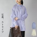 シャツ レディース 長袖 綿 ストライプ 羽織り 体型カバー ワイド トップス コットン 60代 50代 40代 30代 20代 ベージュ ネイビー ビッグシルエット おしゃれ