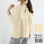 ブラウス レディース 長袖 白 黒 フリル ワイド トップス 体型カバー ゆったり 春 夏 重ね着 レイヤード 60代 50代 40代 30代 20代 おしゃれ
