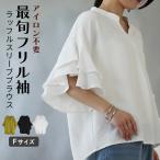 ブラウス レディース 白 半袖 オフィス フリル 黒 春 夏 無地 体型カバー シンプル きれいめ 上品 トップス スキッパー ラッフルスリーブ おしゃれ