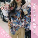 レトロ 花柄プリント サテンシャツ レディース フラワー柄 レトロ柄 長袖 トップス 韓国ファッション ストリート