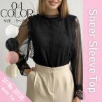 シアー トップス ブラウス 長袖 レース 透け感 きれいめ 春 秋 レディース 韓国ファッション シースルー 通勤 セレモニー 式典 丸首 オフィス