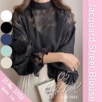 シアーブラウス シアートップス ジャガード ボリューム袖 透け感 レディース 韓国ファッション フェミニン きれいめ オフィス 卒業式 入学式 春秋