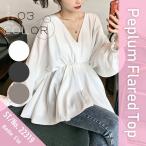 トップス ブラウス ペプラム ゆったり ウエストマーク Vネック レディース 韓国ファッション きれいめ 上品 おしゃれ シンプル オフィス 無地