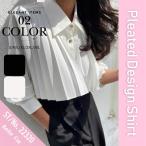シャツ ブラウス トップス 長袖 プリーツ オフィス 通勤 入学式 卒業式 レディース きれいめ 韓国ファッション カジュアル 大人 シンプル 無地