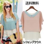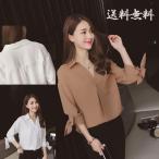 シフォン ブラウス 半袖 レディース フロントタック