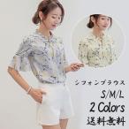 シフォン 花柄 お試し ブラウス 半袖 レディース フロントタック
