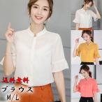 シャツ ブラウス 半袖 レディース 無地 トップス フリル袖 体型カバー