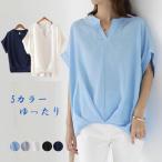 トップス 半袖 七分袖 カットソー ブラウス レディース ゆったり 無地 シャツ 体型カバー