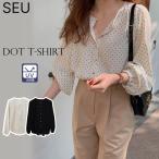 ドット柄 ノーカラー 七分袖 ブラウス 水玉 シャツ カーディガン シアーシャツ 長袖 トップス ゆったり 体型カバー 日焼け対策 冷房対策 シアーカ