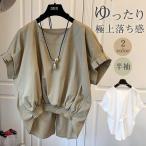 セール ブラウス 半袖 レディース シャツ トップス 切替 カットソー 重ね着 流行り 通勤 春夏 Tシャツ 柔らかい チュニック ふわっと