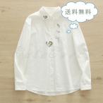 コットンシャツ シャツ ブラウス スタンダードカラー 猫柄 刺繍 長袖 ロング レディース インナー トップス ホワイト 春 夏 ゆったり ナチュラル カジュアル