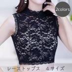 ブラウス レディース トップス インナー ショート丈 ハイネック ノースリーブ 袖なし レース シースルー シアー 透け感 重ね着 レイヤード きれい