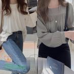 カットソー レディース tシャツ 長袖 バルーン袖 スクエアネック プルオーバー 無地 トップス 春 秋 冬 シャツ ブラウス カ