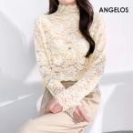 花柄ストレッチ長袖Tシャツ トップス 花柄レースブラウス レディース 花柄 重ね着 伸縮性 ストレッチ 透け感 きれいめ 長袖 春秋 ANGELOS
