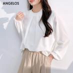 トップス ブラウス レディース 春 長袖 スタンドカラー ラウンドネック シャーリング 袖フリル 袖シャーリング 重ね着 着回し 【 シャーリングブラウス】