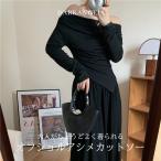トップス オフショルダー ドレープネック ワンショルドレープ カットソー レディース 春 秋 長袖 アシンメトリー 【 オフショルアシメカットソー 】