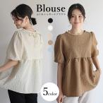 ブラウス レディース 半袖 秋 トップス ジャガード カットソー プルオーバー きれいめ パフスリーブ ゆったり フレア 可愛い 韓国ファッション