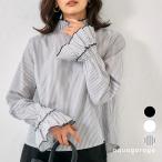 ブラウス レディース 長袖 タック 裾バルーン トップス ホワイト 大きいサイズ フォーマル ブラック 無地 ストライプ ≪ゆうメール便配送20・代引不可≫ 爆買