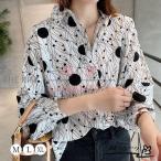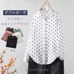 ダブルガーゼ シャツ シャツブラウス レディース 水玉 ガーゼ ブラウス 長袖 綿100% 春 秋 冬 トップス 水玉柄 カジュアル ドット柄 可愛い 二重ガーゼ 快適