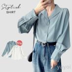 シャツ レディース トップス 長袖 ブラウス ボリューム袖 ゆったり カジュアル オフィス 復古 通学 通勤 無地 体型カバー おしゃれ 春新作 上品