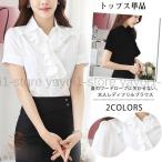 半袖シャツ フリル シフォンブラウス レディースビジネス OL オフィス 通勤 フォーマル リクルート 大きいサイズ ベーシック 白 黒 スーツインナ