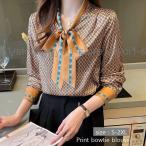 ブラウス 柄シャツ レトロ レディース おしゃれ 幾何学プリント 長袖 トップス 夏春秋 オフィス シフォンブラウス ゆったり