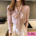 ブラウス ボウタイ リボン 長袖 レディース トップス シフォン ドット柄 大きいサイズ おしゃれ きれいめ フェミニン 女性 春 秋