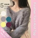 ニット フェザーヤーン ショート丈 Vネック フェザーニット 無地 レディース 韓国ファッション クロップド もこもこ 柔らか チクチクしない 大人