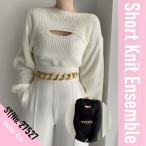 短丈ニット タンク アンサンブル レディース ショート丈 セクシー セーター 白 黒 ニット トップス 秋 冬 おしゃれ 韓国 きれいめ コンサバ