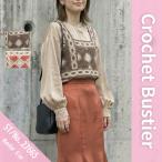 クロシェ トップス レディース 韓国ファッション キャミ 刺繍 編み レース レイヤード かわいい ガーリー 花柄 モチーフ ビスチェ フェミニン