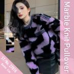 ニット 長袖 プルオーバー レディース 韓国ファッション ギャル マーブル 派手 インパクト 個性的 あたたかい 防寒 秋冬 かぶり 紫 白 黒