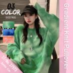 ニット トップス プルオーバー 総柄 グラデーション 派手 秋冬 レディース 韓国ファッション セーター おしゃれ あたたかい 厚手 赤 緑 青
