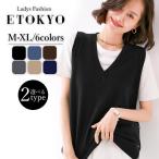 ニットベスト Uネック Vネック 2タイプ サイドボタン 温かい あったかい お洒落 柔らかい アシンメトリー ヒップカバー 体型カバー yctops32