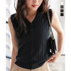 トップス レディース ヘンリー 40代 Vネック リブ ポロニット ノースリーブ 白 黒 30代 50代 爆買 N1343