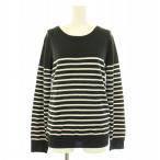 ナノユニバース nano universe REPOSEFUL ニット セーター 長袖 クルーネック 薄手 ボーダー柄 S 黒 ブラック 白 ホワイト