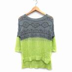 グレイジー GRAZIE ニット セーター かぎ針編み 長袖 丸首 ロングテール バイカラー サイドスリット M グレー 灰 ライム /HT22 レディース