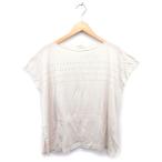 ユナイテッドアローズ UNITED ARROWS カットソー ニット ボートネック シルク混 リブ スクエア 透け感 ビーズ装飾 半袖 ベージュ