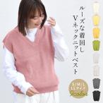 ニットベスト レディース Vネック ベスト プルオーバー トップス シンプル 定番 ざっくりV 大人 カジュアル オフィスカジュアル すっきり おしゃれ