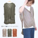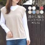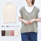 ニットベスト 透かし編み メッシュ Vネック レディース トップス ノースリーブ ベスト ゆったり ワイド