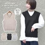 ニットベスト レディース Vネック ベスト 春 ウール混 ジレ セーター トップス ニット プルオーバー