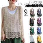プルオーバー ノースリーブ クロシェ編み 夏 ベスト トップス 春 無地 レディース 春 夏 透かし編み カジュアル ベスト サマー プルオーバー 重