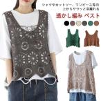 ベスト ジレ トップス レディース 夏 袖なし ニットベスト 大きいサイズ サマーベスト 秋 透かし編み 春 プルオーバー ニット トップス Vネック