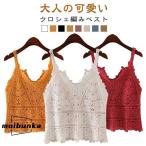 ベスト レディース 春夏 ビスチェ トップス ベスト クロシェ編み 透かし編み クロシェ ニット vネック かぎ編み かぎ針 ベスト レース ノースリ